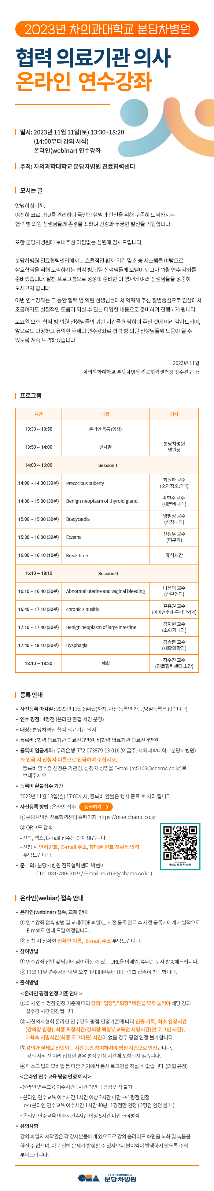 2023 분당차병원 협력 의료기관 의사 온라인 연수강좌