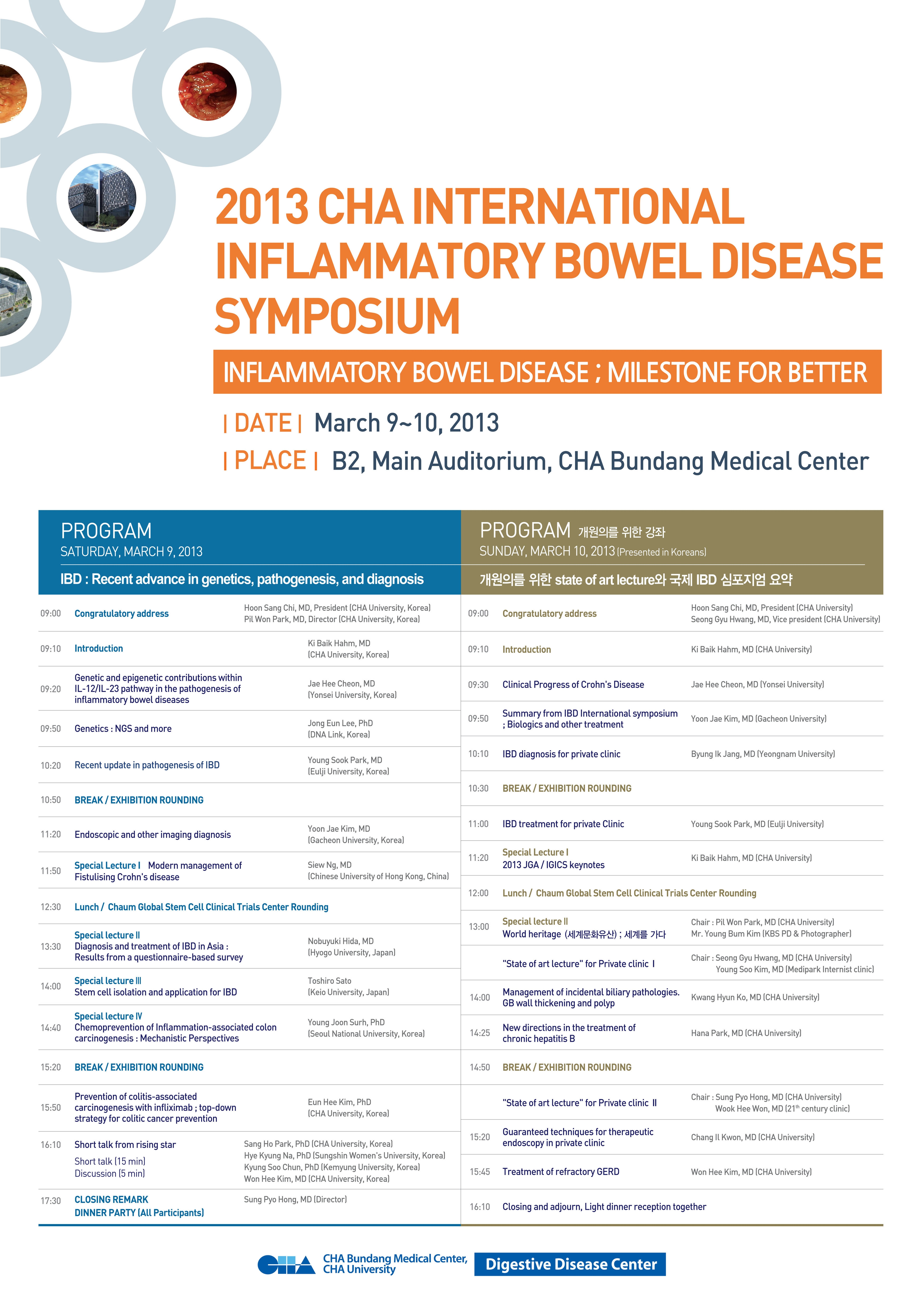 2. 행사내용 : 2013년 CHA국제 염증성 장질환 및 개원의 연수강좌